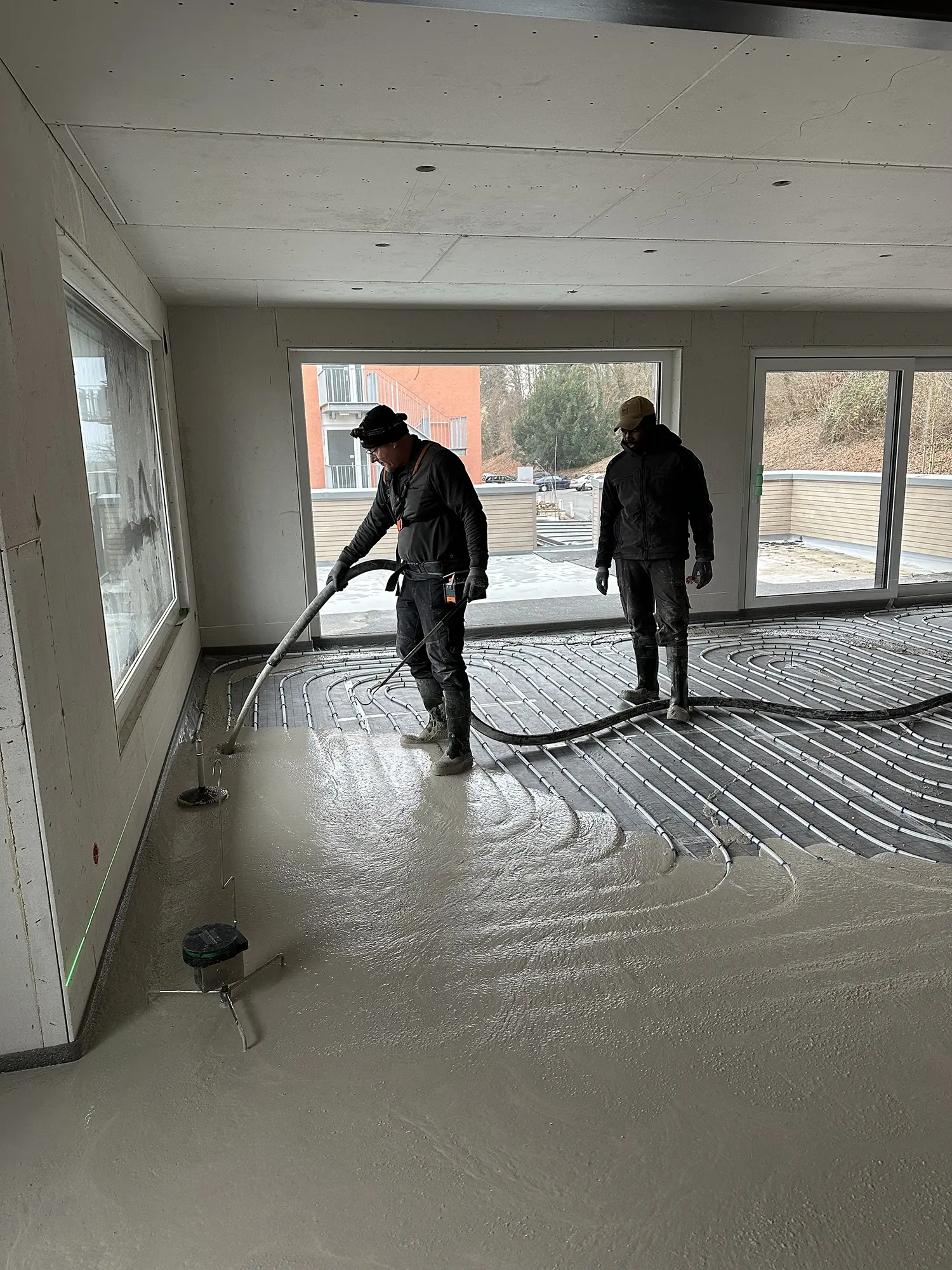 Fließestrich verteilt sich nahezu von selbst und sorgt für eine besonders ebene Oberfläche – optimal für große Flächen und Böden mit komplexen Rohrinstallationen.